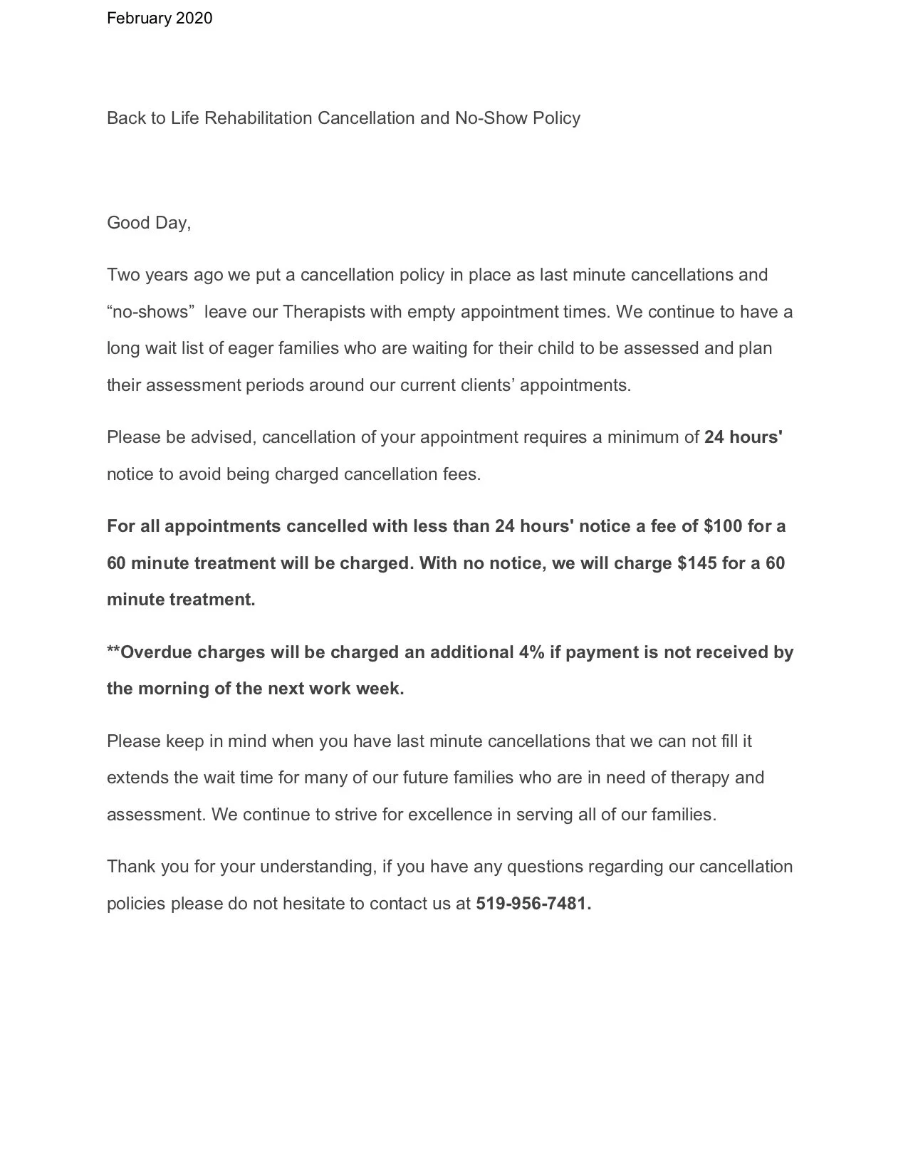 Cancellation and No-Show Policy
